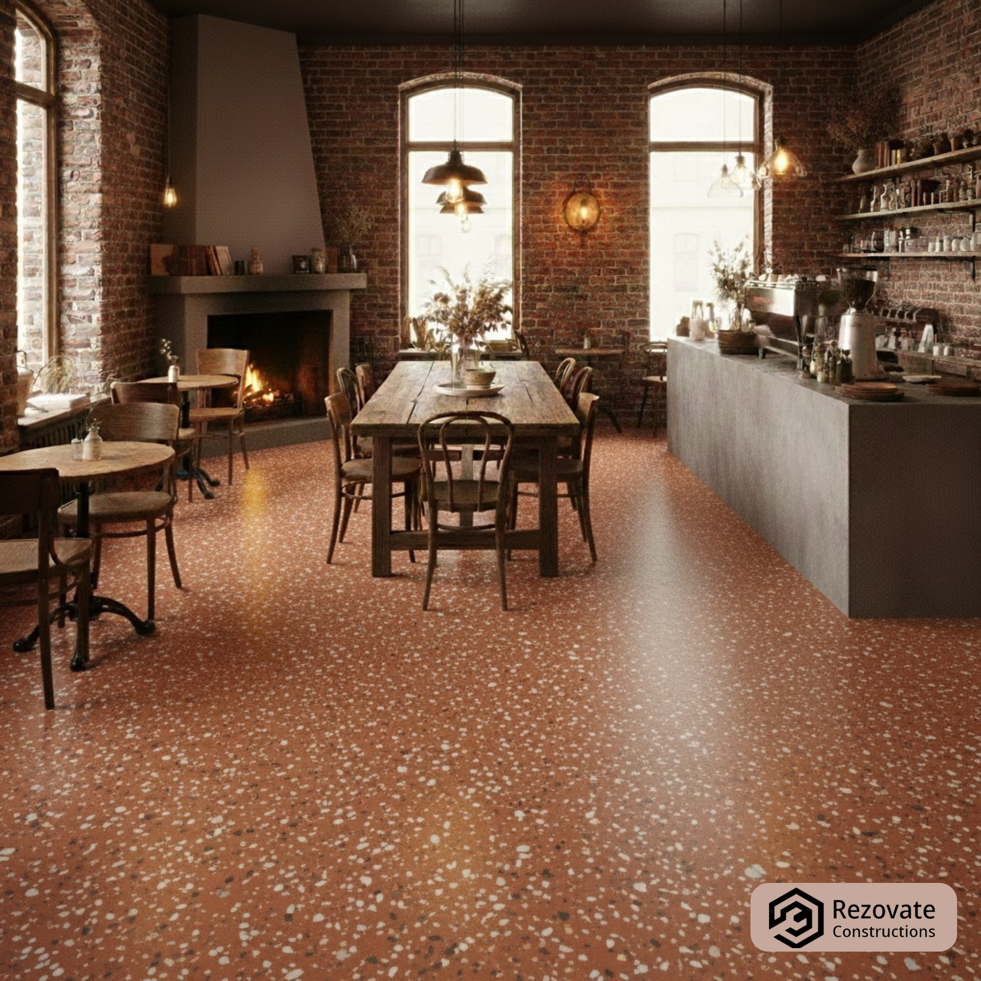 Because cafes are lively and constantly in use, the flooring needs to handle movement while still looking calm and inviting. This is where terrazzo works beautifully. Its smooth, seamless surface keeps the space looking clean and organized, even during busy hours. Spills are easy to manage, and the floor does not lose its charm with daily wear.